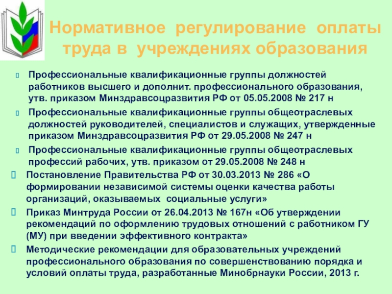 особенности формирования систем оплаты труда педагогических работников государственных и муниципальных образовательных учреждений.