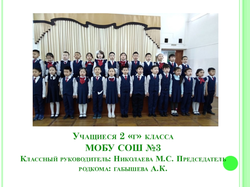 Учащиеся 2 «г» класса МОБУ СОШ №3 Классный руководитель: Николаева М.С. Председатель родкома: габышева А.К.