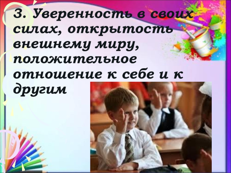 Слайд 153. Уверенность в своих силах, открытость внешнему миру, положительное отношение к