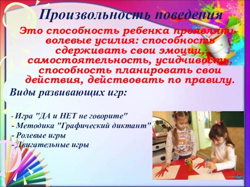Это способность ребенка проявлять волевые усилия: способность сдерживать свои