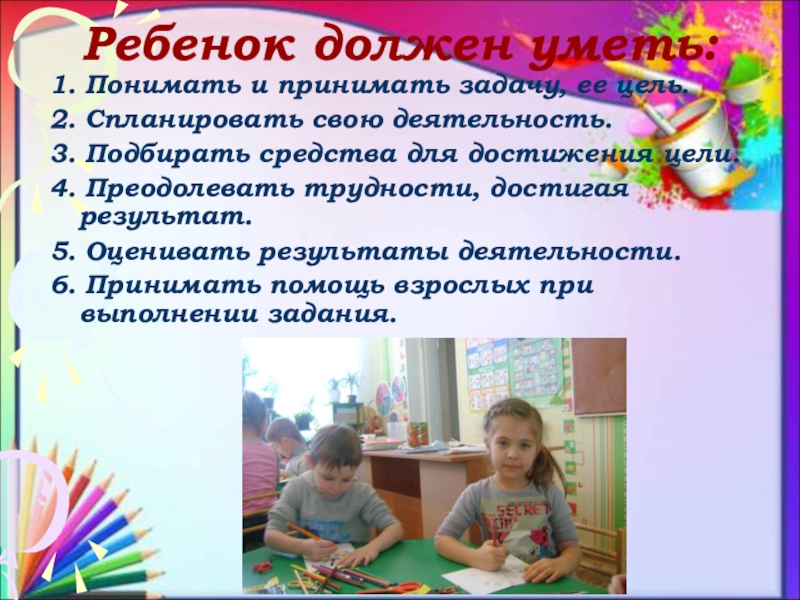 Ребенок должен уметь правильно оценивать себя и свое поведение.