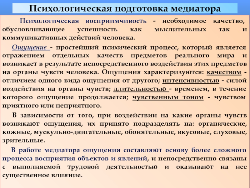 Восприятие “иных миров” и внутреннее “включение” в один из них дает медиатору возможность понимать множественность, многогранность любой жизненной и профессиональной ситуации.