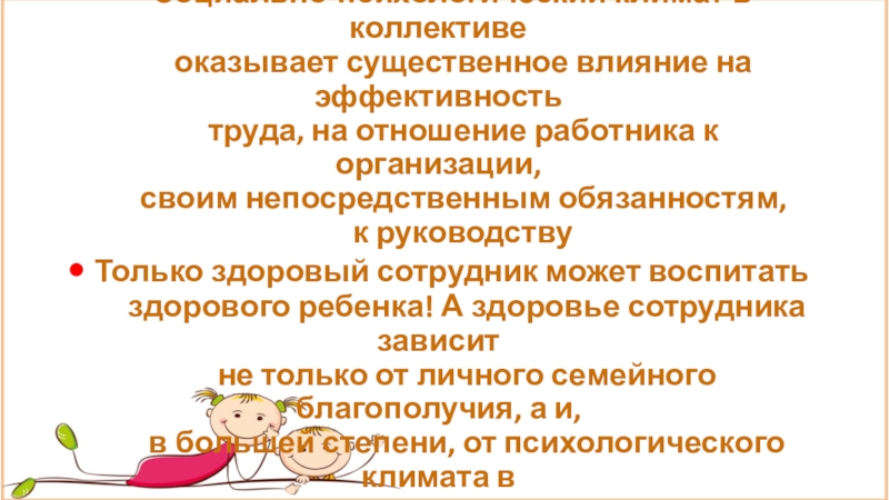 Слайд 4Социально-психологический климат (психологический настрой), то есть взаимоотношения сотрудников: