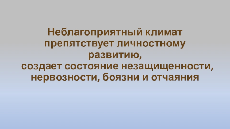 Слайд 10Неблагоприятный климат препятствует личностному развитию,