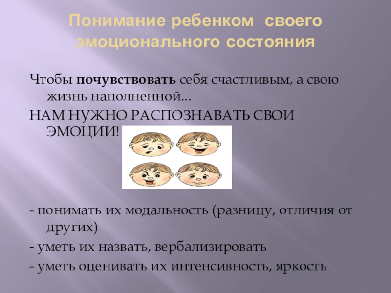 Слайд 19Понимание ребенком своего эмоционального состояния