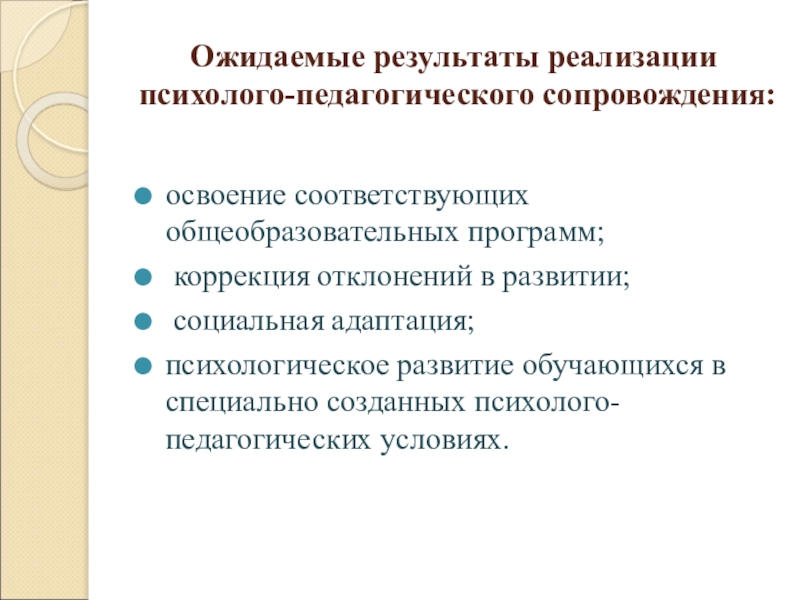 Слайд 16Ожидаемые результаты реализации психолого-педагогического сопровождения: