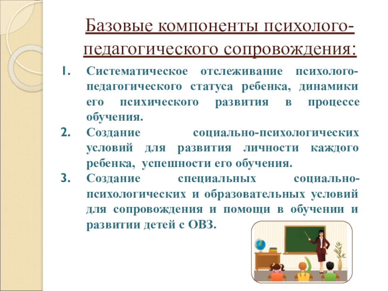 Слайд 7Базовые компоненты психолого-педагогического сопровождения: