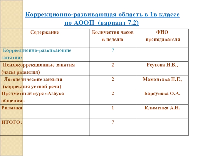 Коррекционно-развивающая область в 1в