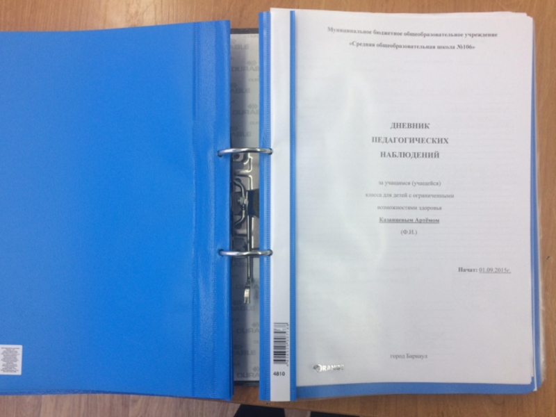 Дневники педагогических наблюдений за учащимися классов для детей с ограниченными возможностями здоровья.