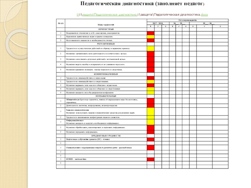 Слайд 4Педагогическая диагностика (заполняет педагог) I:\I:\защита\Педагогическая диагностика.I:\защита\Педагогическая диагностика.docx