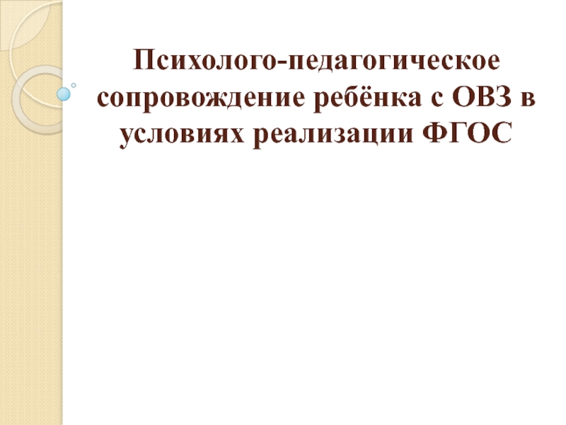 Слайд 1Психолого-педагогическое сопровождение ребёнка с ОВЗ в условиях реализации ФГОС
