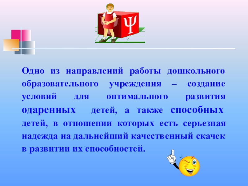 Задача коррекционно-развивающей работы с одаренными детьми – это раскрытие потенциальных возможностей ребенка.