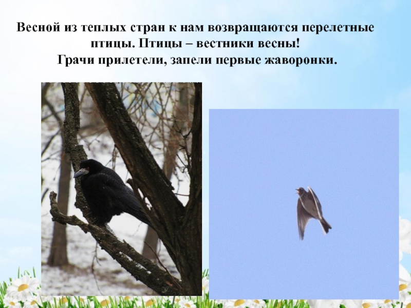 Слайд 3Весной из теплых стран к нам возвращаются перелетные птицы. Птицы –