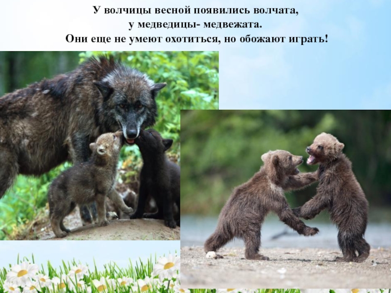 Слайд 10У волчицы весной появились волчата, у медведицы- медвежата. Они еще не