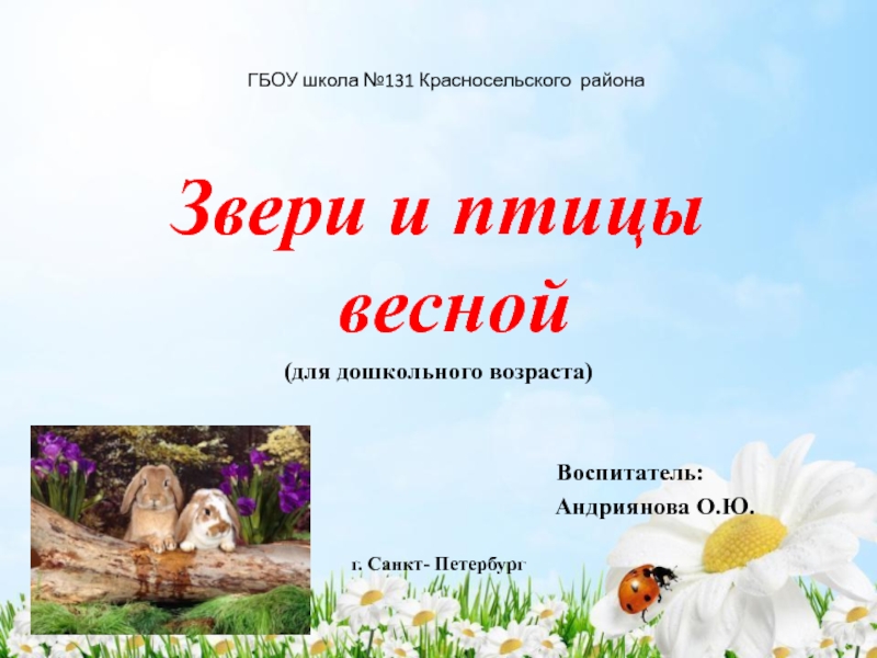 ГБОУ школа №131 Красносельского районаЗвери и птицы весной(для дошкольного возраста)