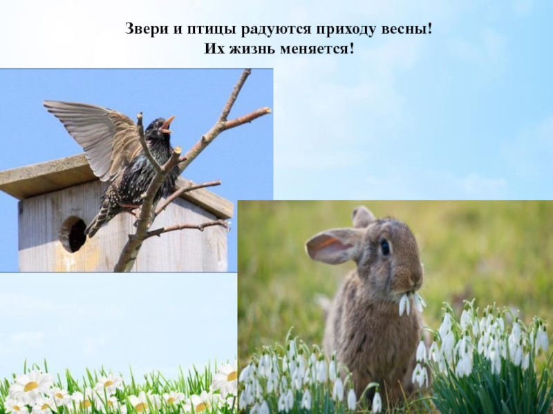 Слайд 2 Звери и птицы радуются приходу весны! Их жизнь меняется!