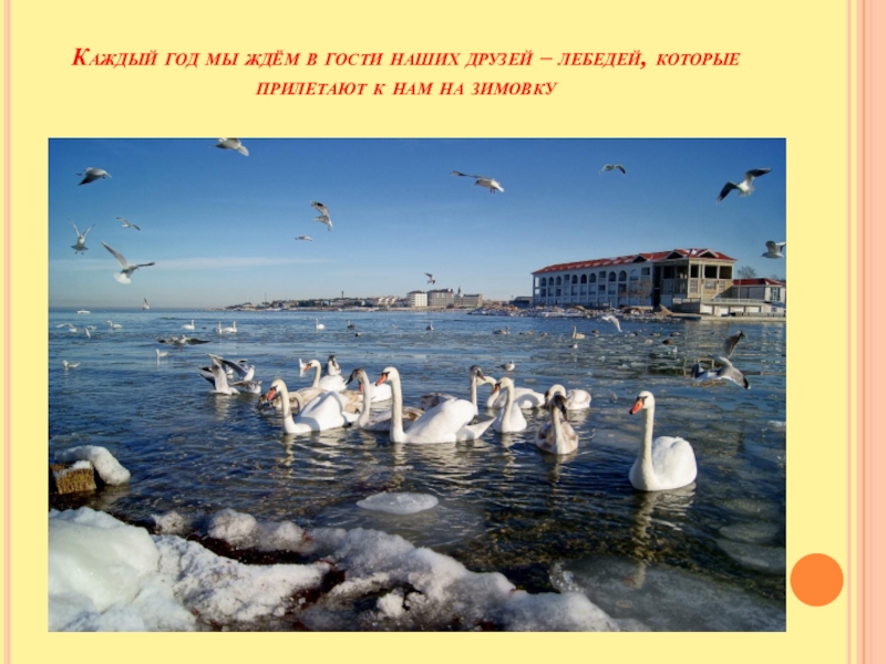 Слайд 5Каждый год мы ждём в гости наших друзей – лебедей, которые