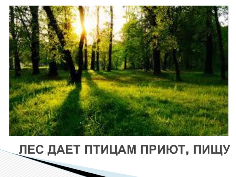 Слайд 24ЛЕС ДАЕТ ПТИЦАМ ПРИЮТ, ПИЩУ