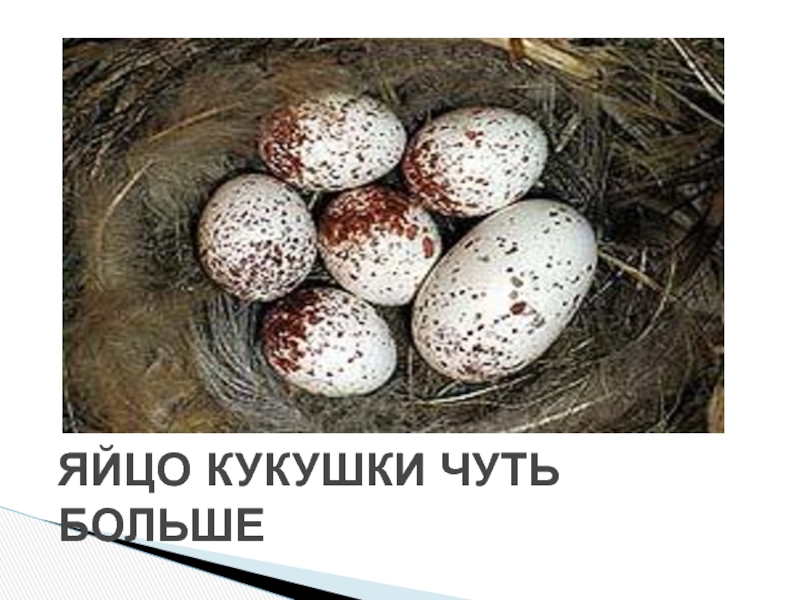 Слайд 21ЯЙЦО КУКУШКИ ЧУТЬ БОЛЬШЕ