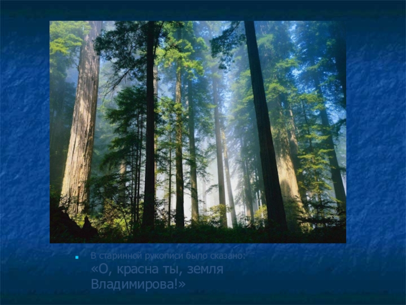 Слайд 3В старинной рукописи было сказано: «О, красна ты, земля Владимирова!»
