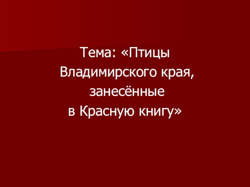 Тема: «Птицы Владимирского края, занесённые в Красную книгу»