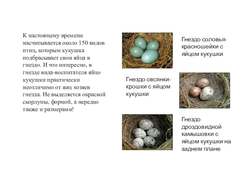 Гнездо дроздовидной камышовки с яйцом кукушки на заднем плане