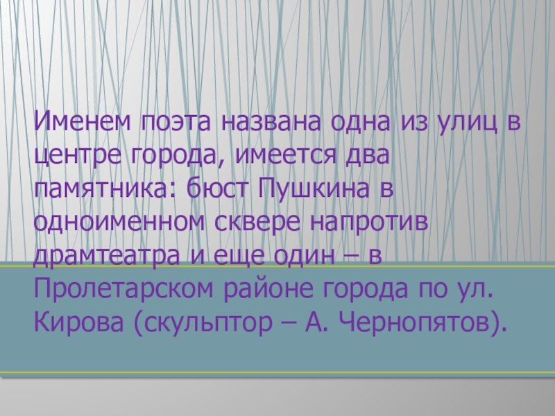 Слайд 10Именем поэта названа одна из улиц в центре города, имеется два