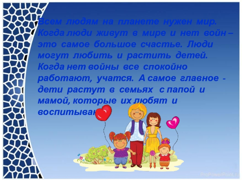 Это сайт презентаций, где можно хранить и обмениваться своими презентациями, докладами, проектами, шаблонами в формате PowerPoint с другими пользователями. Мы помогаем школьникам, студентам, учителям, преподавателям хранить и обмениваться учебными материалами.