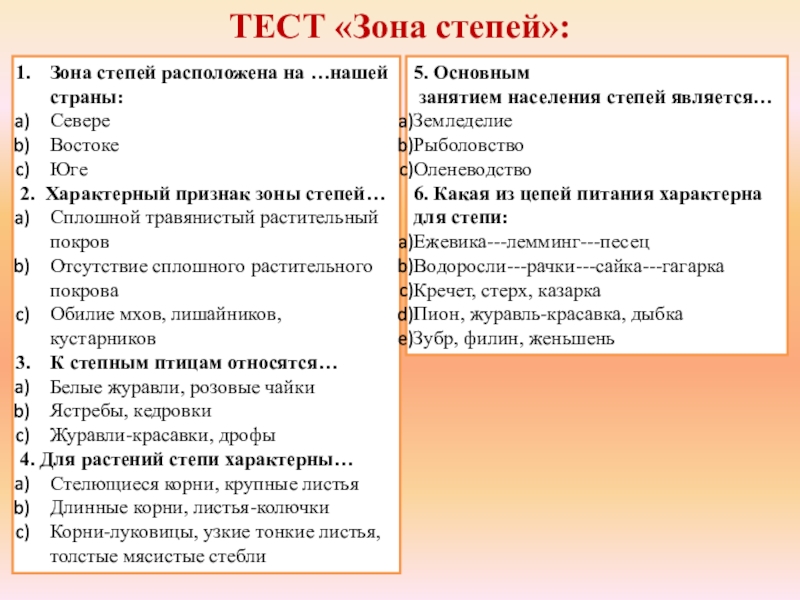 занятием населения степей является…