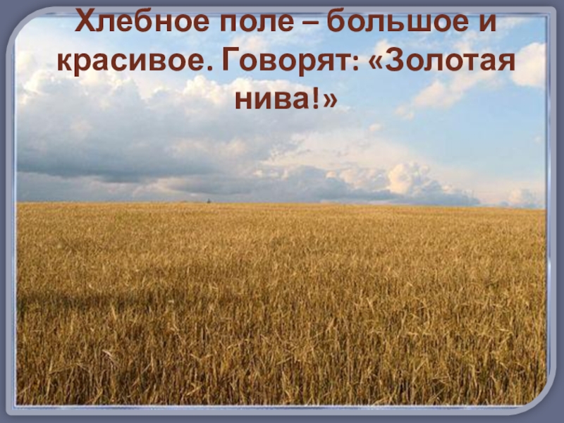 Слайд 4Хлебное поле – большое и красивое. Говорят: «Золотая нива!»
