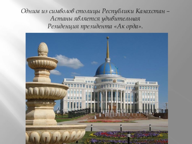 Одним из символов столицы Республики Казахстан – Астаны является удивительная Резиденция президента «Ак орда».