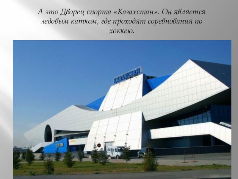 Слайд 4А это Дворец спорта «Казахстан». Он является ледовым катком, где проходят