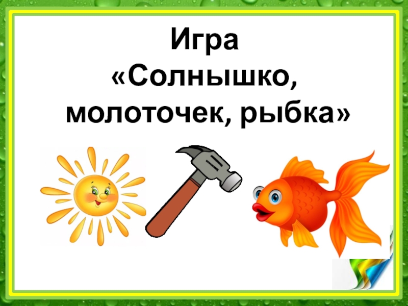 Слайд 4Игра «Солнышко, молоточек, рыбка»
