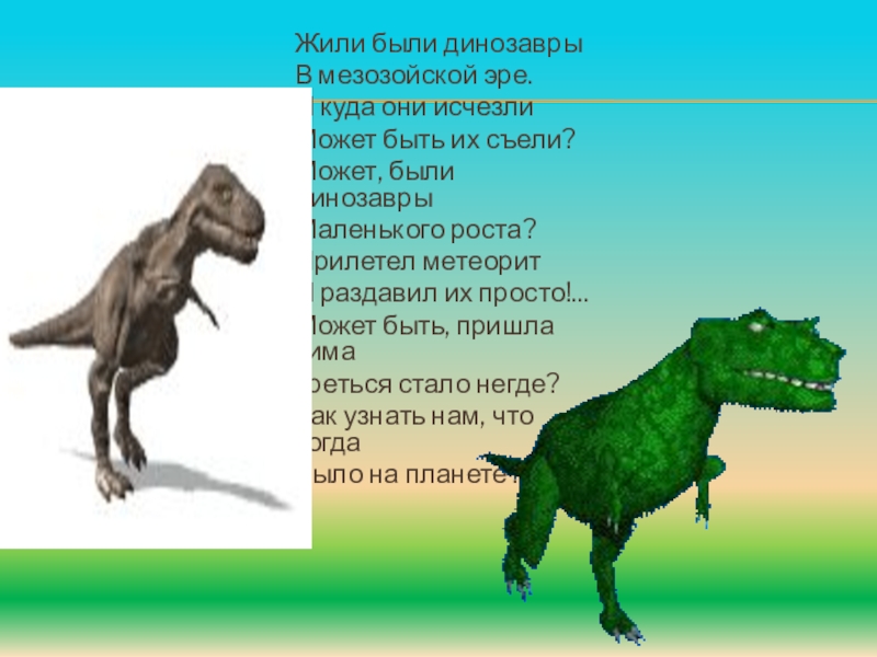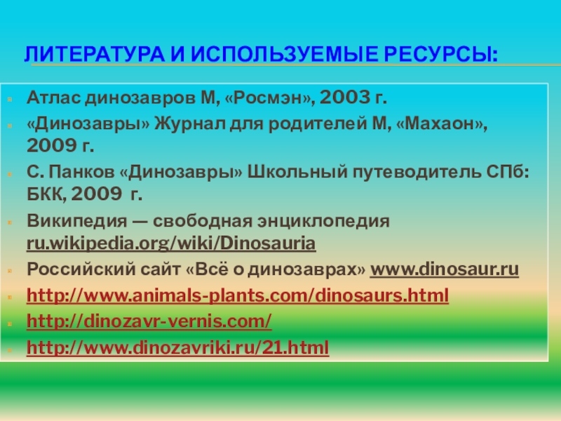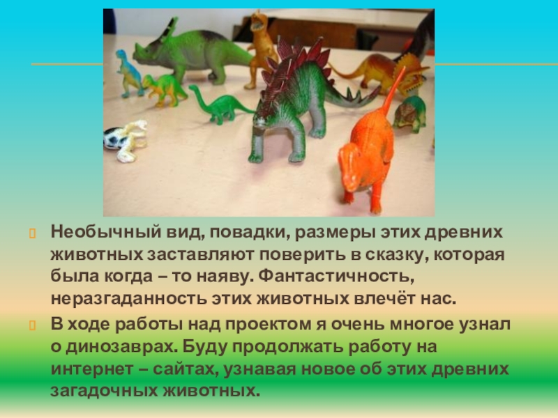 В ходе работы над проектом я очень многое узнал о динозаврах. Буду продолжать работу на интернет – сайтах, узнавая новое об этих древних загадочных животных.