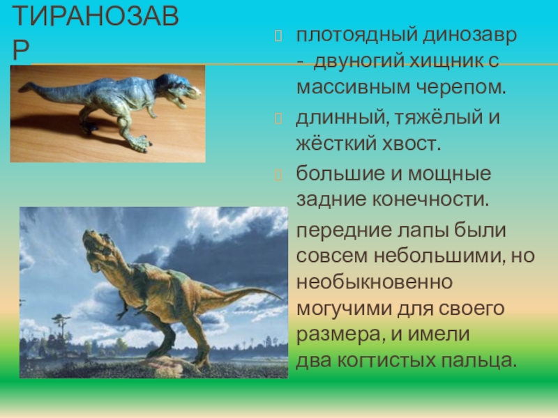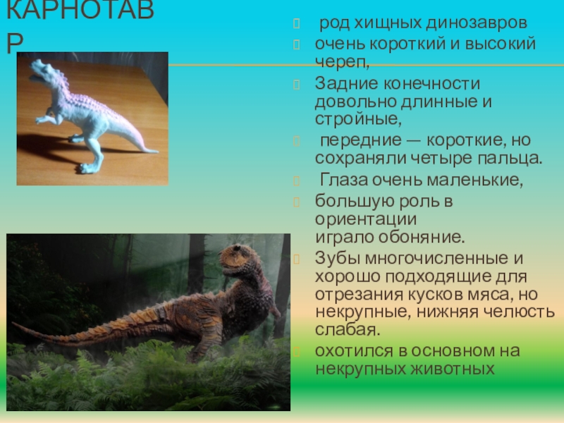 плотоядный динозавр - двуногий хищник с массивным черепом.