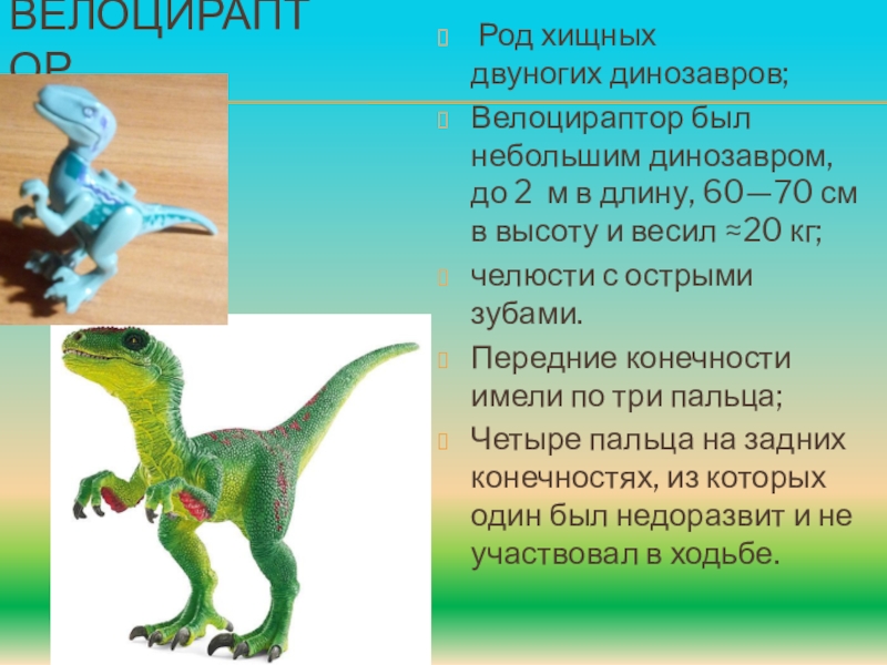 Велоцираптор был небольшим динозавром, до 2 м в длину,