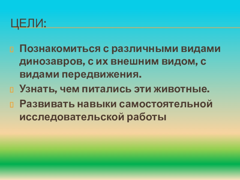 Познакомиться с различными видами динозавров, с их внешним видом, с видами