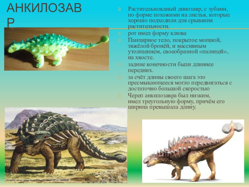 Панцирное тело, покрытое мощной, тяжёлой бронёй, и массивным утолщением, своеобразной «палицей», на хвосте.
