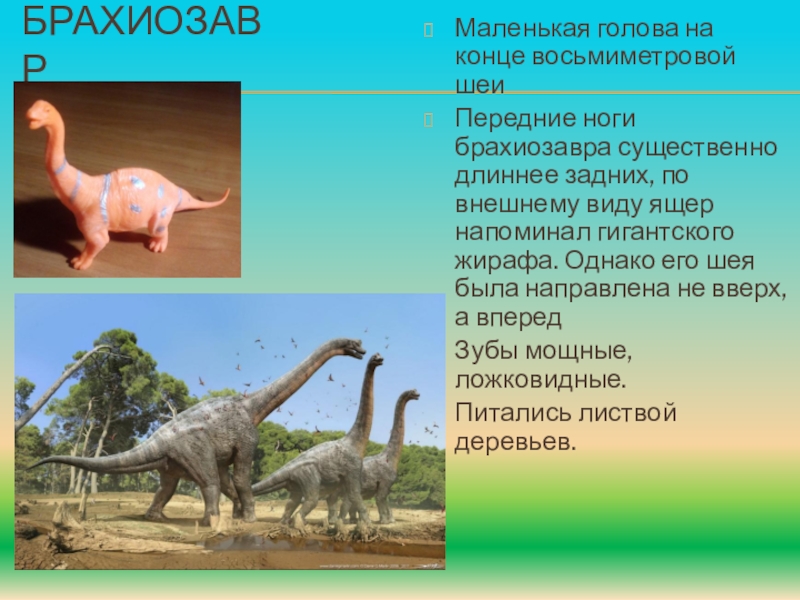 по внешнему виду ящер напоминал гигантского жирафа. Однако его шея была направлена не вверх, а вперед