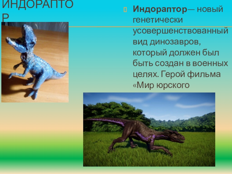 Индораптор— новый генетически усовершенствованный вид динозавров, который должен был быть создан