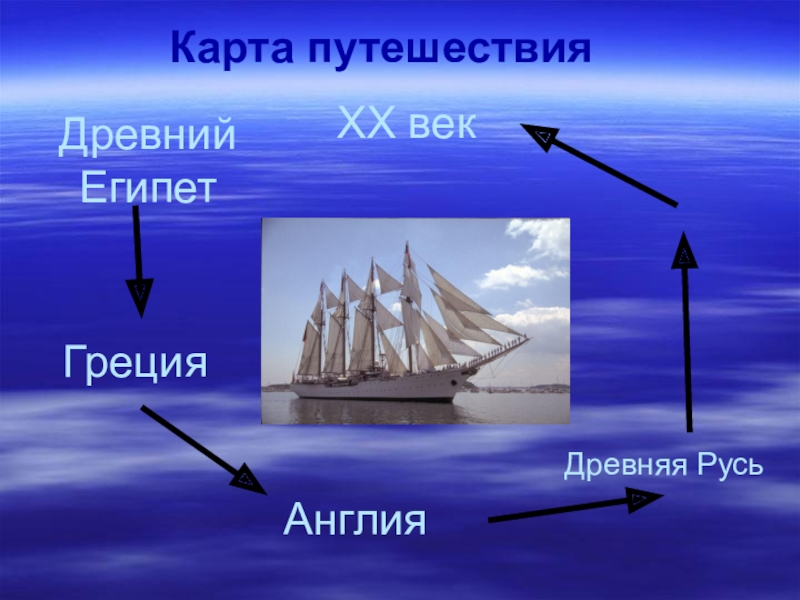 Древний ЕгипетГрецияАнглияДревняя РусьХХ векКарта путешествия