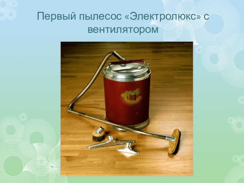 Слайд 11Первый пылесос «Электролюкс» с вентилятором