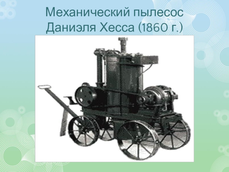 Слайд 5Механический пылесос Даниэля Хесса (1860 г.)