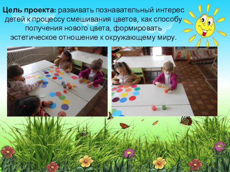 Цель проекта: развивать познавательный интерес детей к процессу смешивания цветов, как способу получения нового цвета, формировать эстетическое