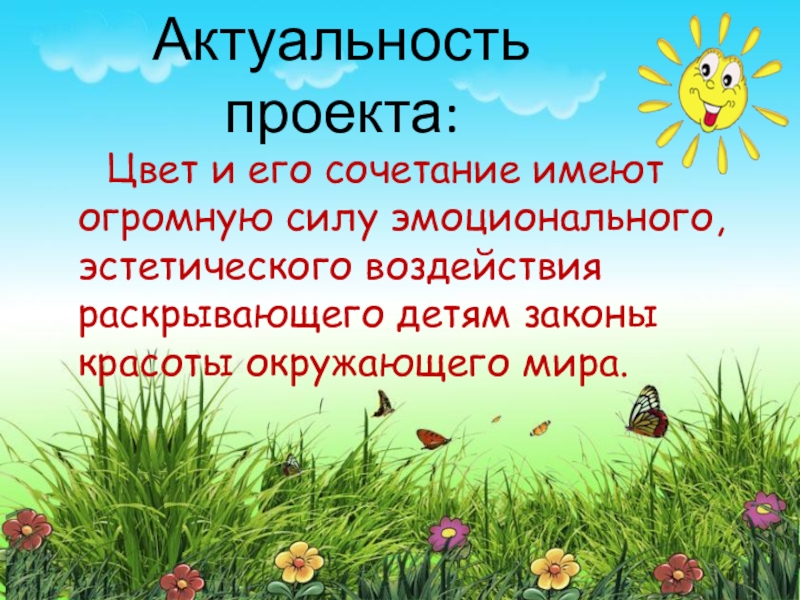 Актуальность проекта:   Цвет и его сочетание имеют огромную силу эмоционального, эстетического воздействия раскрывающего детям законы