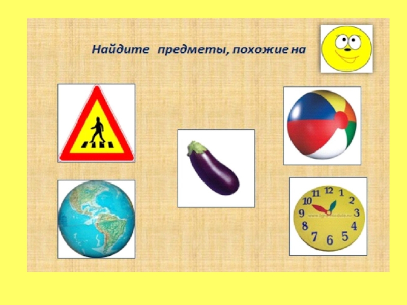 Цель:Познакомить с плоскостными геометрическими фигурами.Развивать умение находить предметы, похожие на геометрические фигуры.