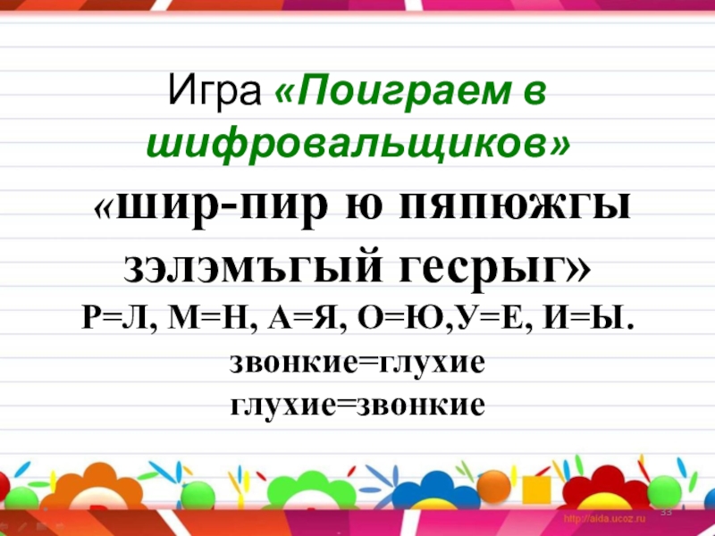Слайд 33Игра «Поиграем в шифровальщиков»