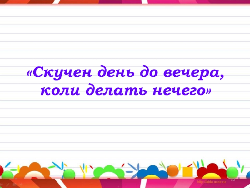 Слайд 32«Скучен день до вечера, коли делать нечего»