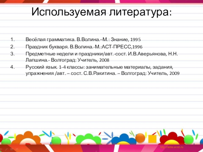 Праздник букваря. В.Волина.-М.:АСТ-ПРЕСС,1996