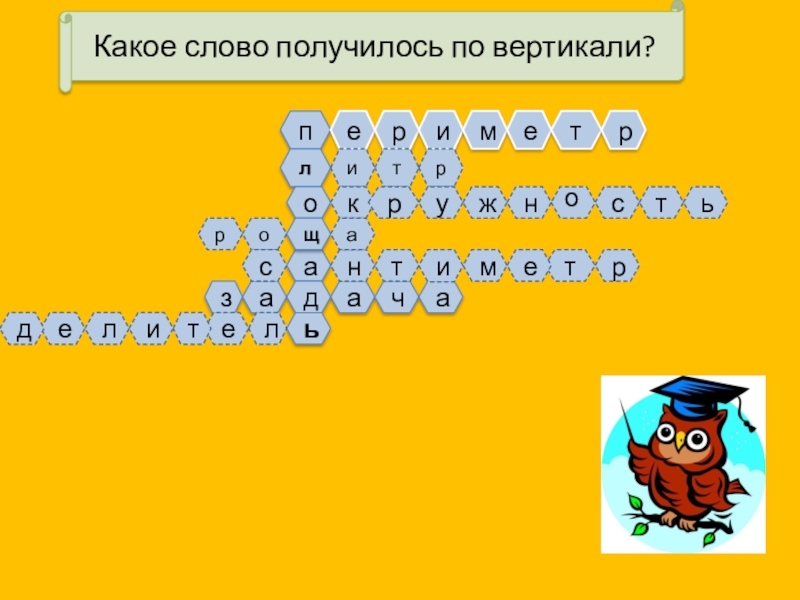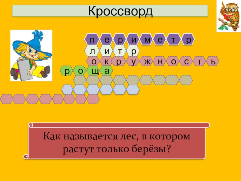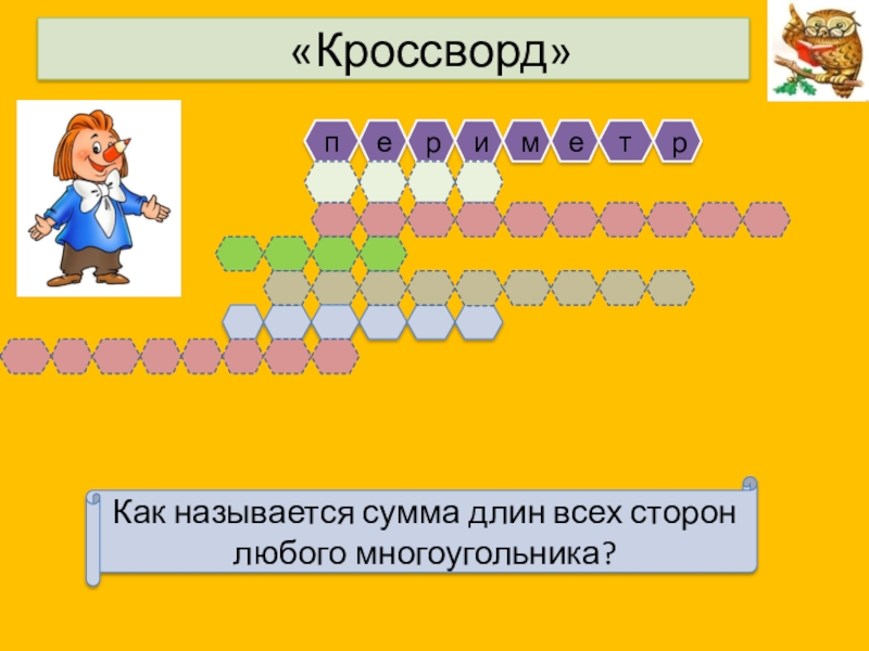 «Кроссворд»периметрКак называется сумма длин всех сторон любого многоугольника?